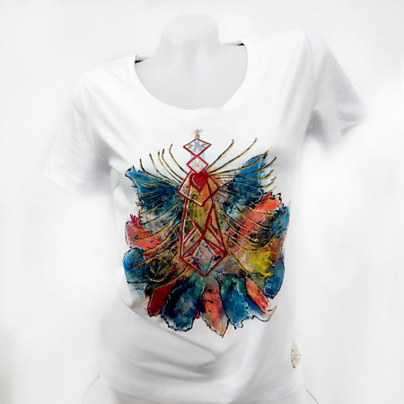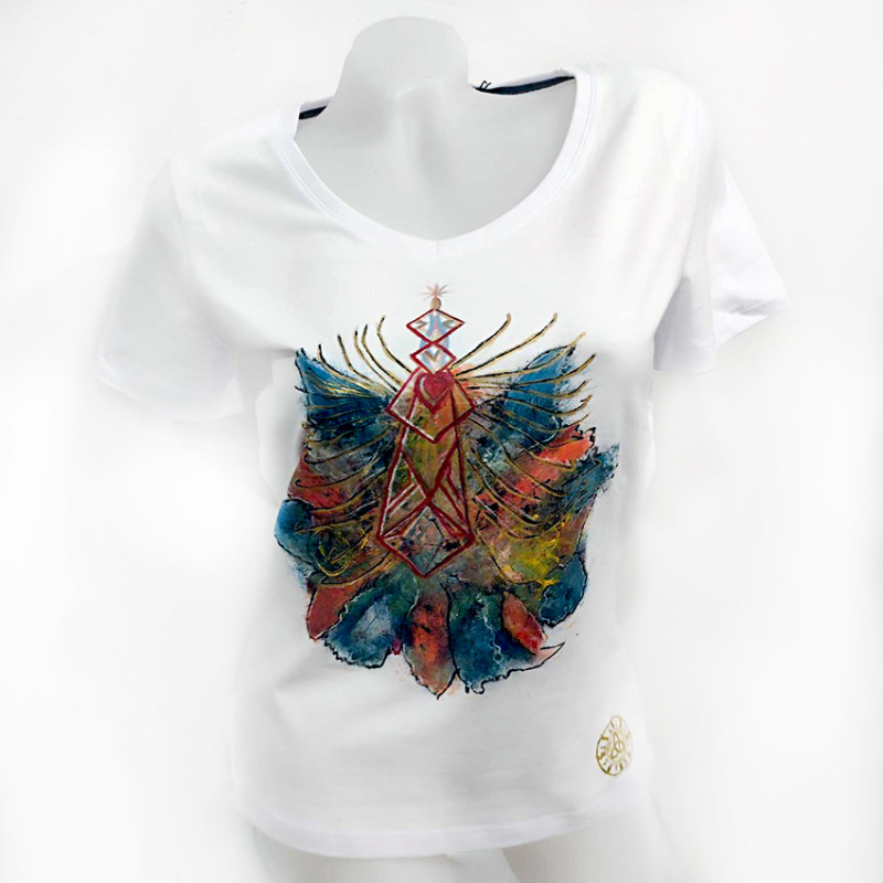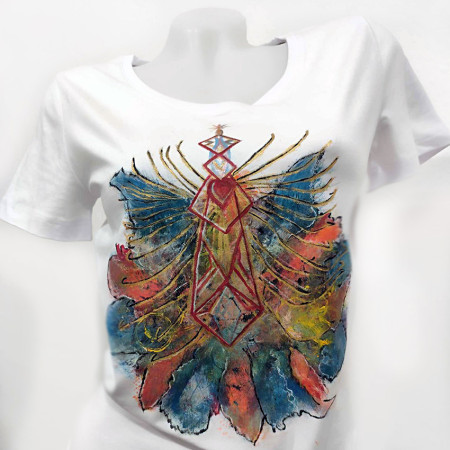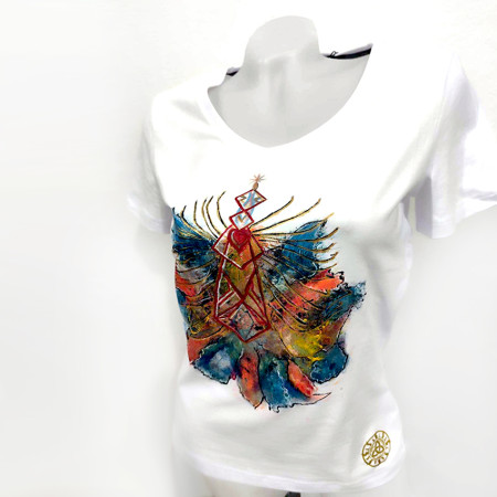 Jedinečné ručne maľované tričko naplnené všeobjímajúcou energiou umelca vhodné pre otvorenú krásnu dušu maľované s láskou. K tričku dostanete CERTIFIKÁT o jedinečnosti s jedinečným číslom a energetickým odkazom pre Vás. Tričko dámske značky Malfiny Slim, materiál 95% bavlna, 5% elastan, veľkosť XL.