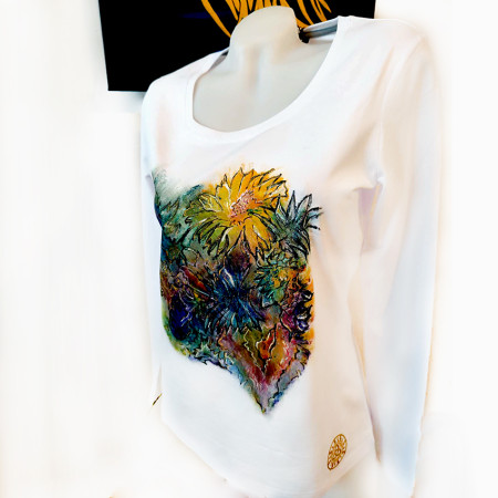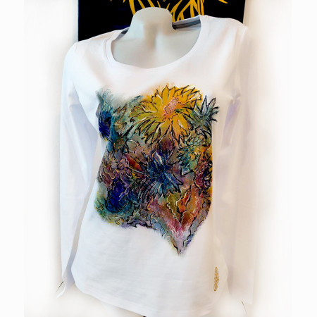 Ručne maľované dámske... Tričko dámske značky Malfiny Dream, materiál 95% bavlna, 5% elastan, veľkosť XL. ...
