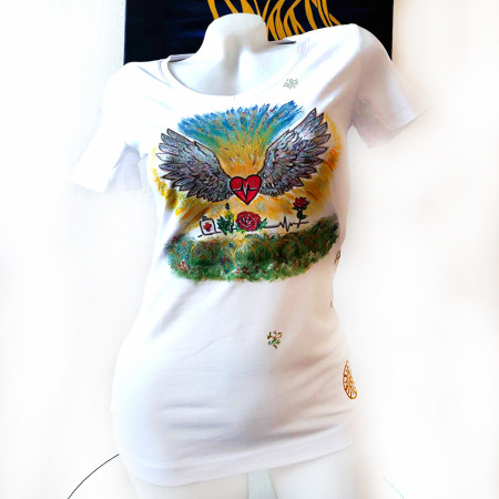 Ručne maľované dámske... Tričko dámske značky Malfiny Slim, materiál 95% bavlna, 5% elastan, veľkosť L.
