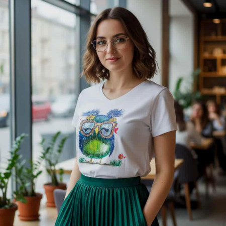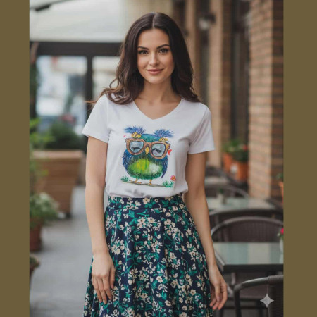 Ručne maľované dámske... Tričko dámske značky Malfiny Slim, materiál 95% bavlna, 5% elastan, veľkosť M. ...